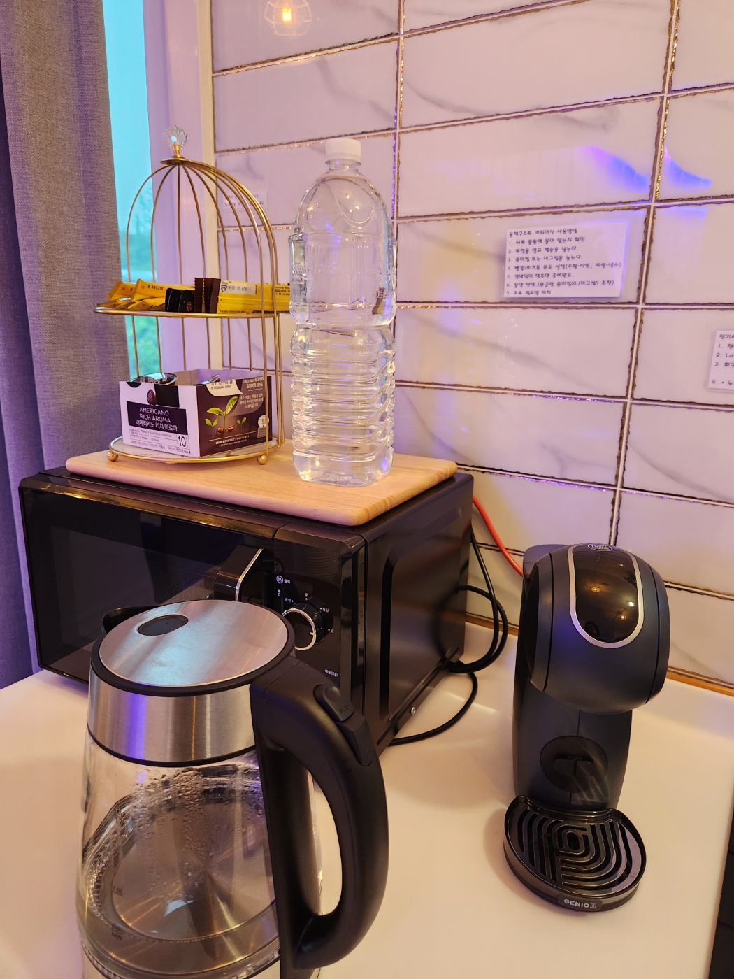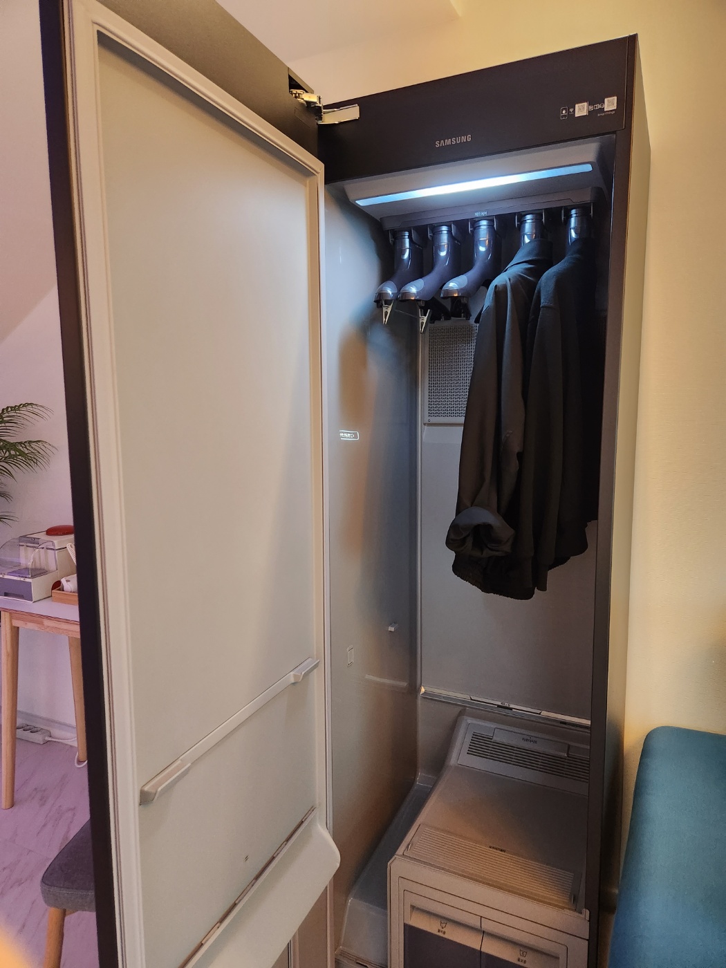 아까도 말했지만 제주몽글랑 펜션은 이제 막 결혼한 신혼부부가 살고 있는 신축 가정집을 연상케 한다 로봇청소기, 스타일러, 식기세척기, 건조기까지 완비되어 있기 때문이다