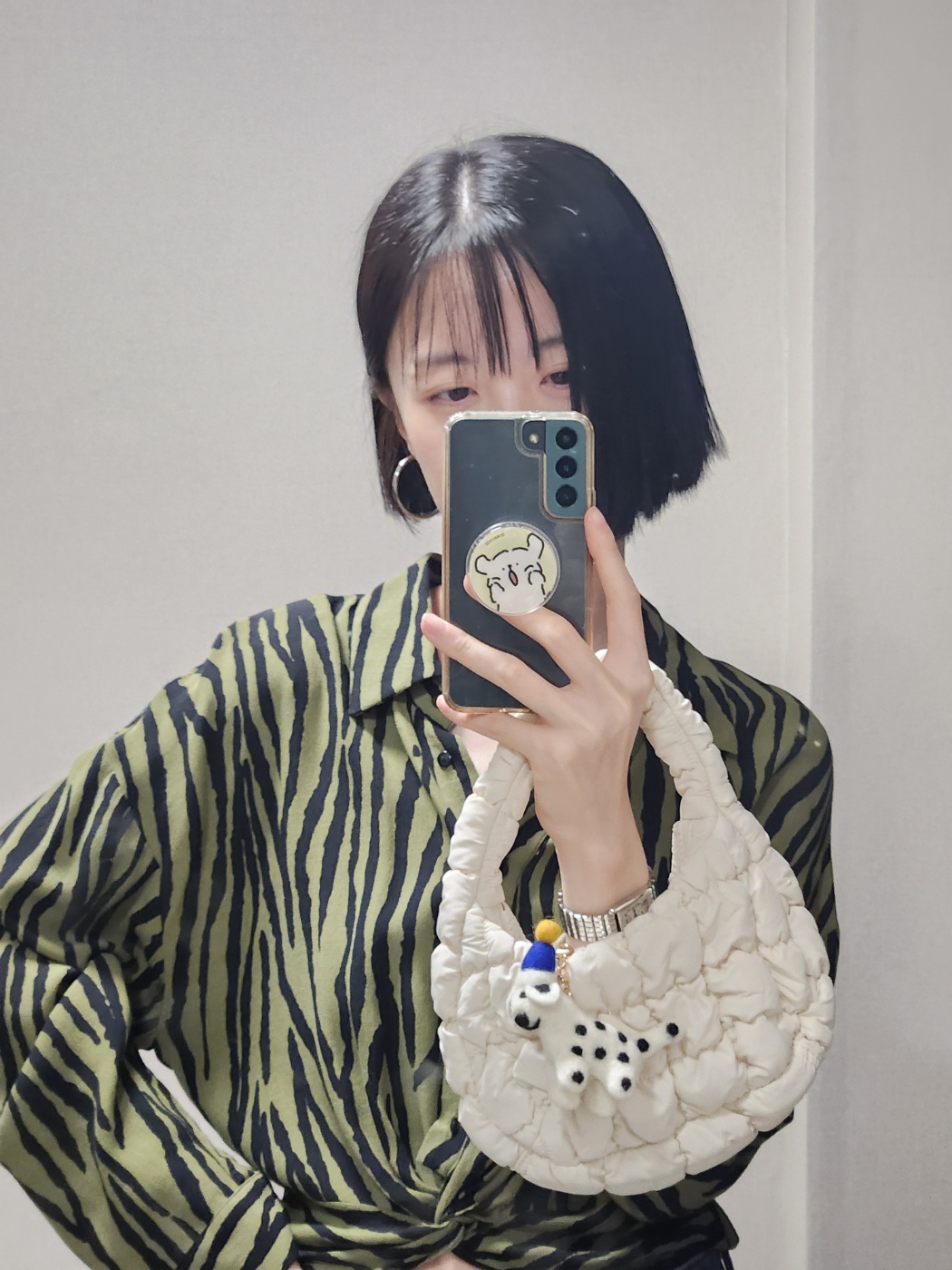 밋밋하거나 평범한 룩에도 포인트 되고 돋보이게 만들어 줌. 키링까지 달고 나니 세상 러블리 여기 다 압축해 놓으심.