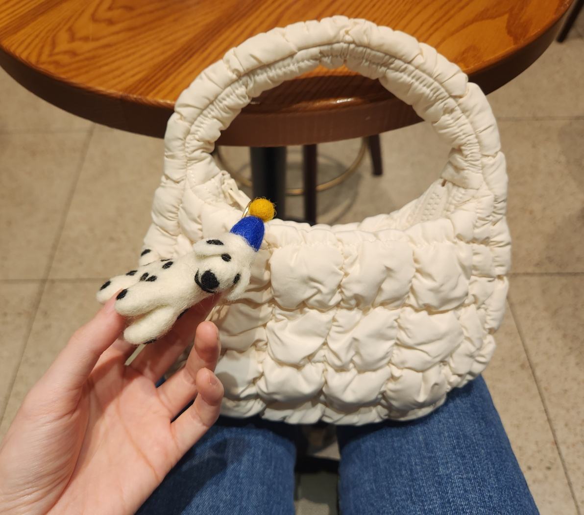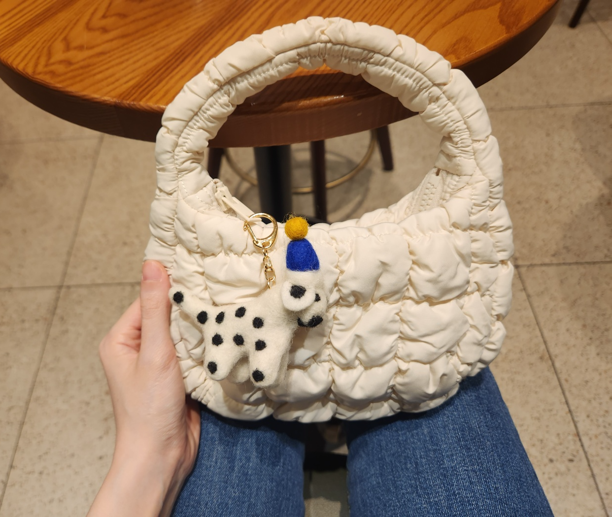 밋밋하거나 평범한 룩에도 포인트 되고 돋보이게 만들어 줌. 키링까지 달고 나니 세상 러블리 여기 다 압축해 놓으심.