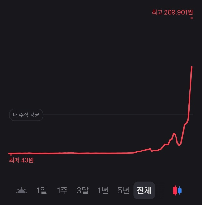 엔비디아 주식의 1년과 전체 차트를 봤을 때 나의 위치.